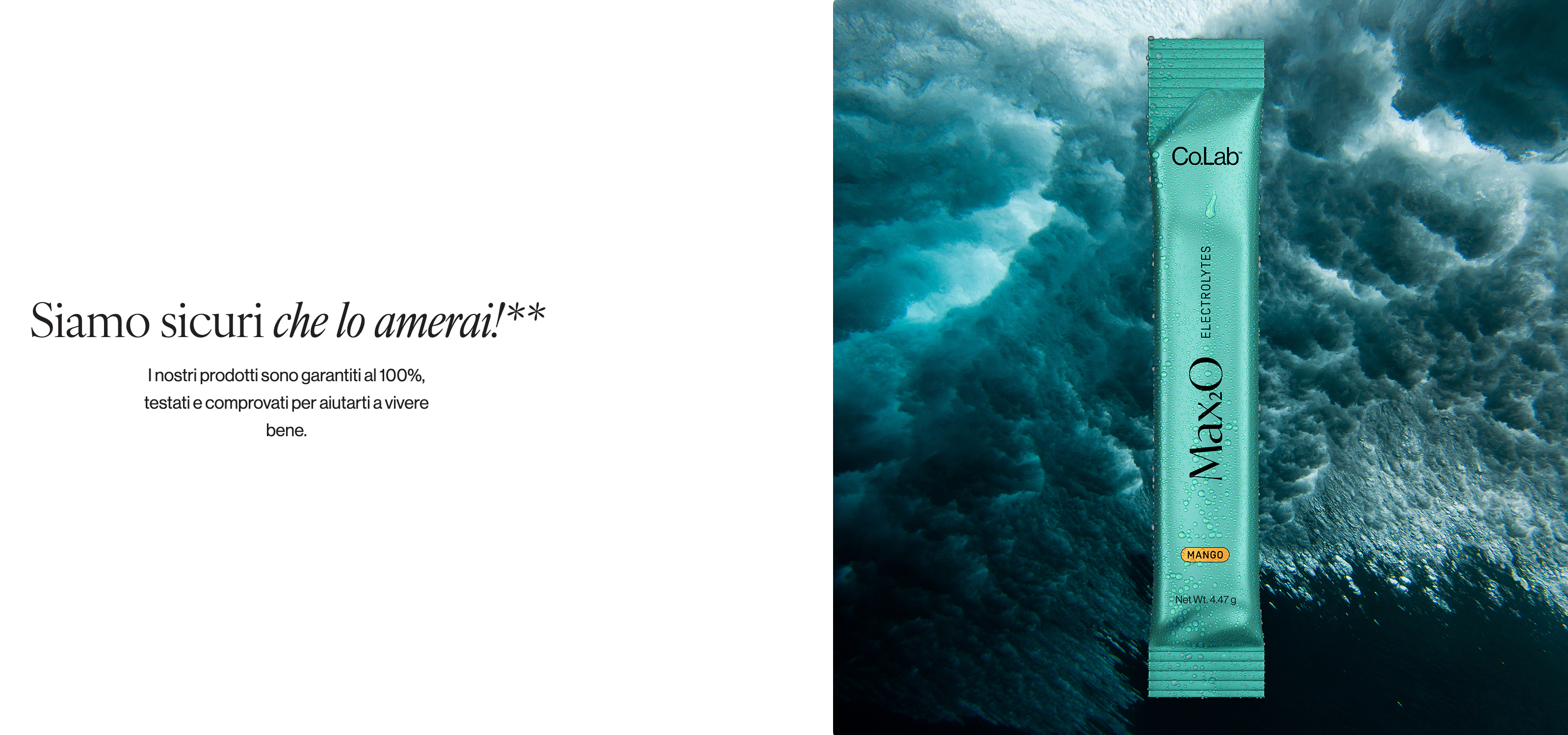 Rinfrescati* con gli elettroliti essenziali di Max₂O. Un modo delizioso e pratico per mantenere l'equilibrio* dall'interno, con solo cinque calorie!